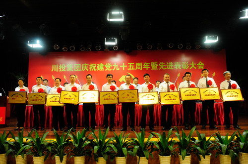 会上,集团公司党委委员、董事金群同志宣读了表彰决定,领导班子成员向受表彰的十二个先进基层党组织、十三名优秀共产党员和十二名优秀党务工作者颁发了奖牌和荣誉证书。川投水务所属宏源燃气党委李旭东、川投能源所属四川嘉阳电力公司电气运行班长汪晓力、川投峨铁公司工会副主席、女工委主任、党群工作部主任李宏分别代表先进基层党组织、优秀共产党员和优秀党员领导人员做了典型发言。