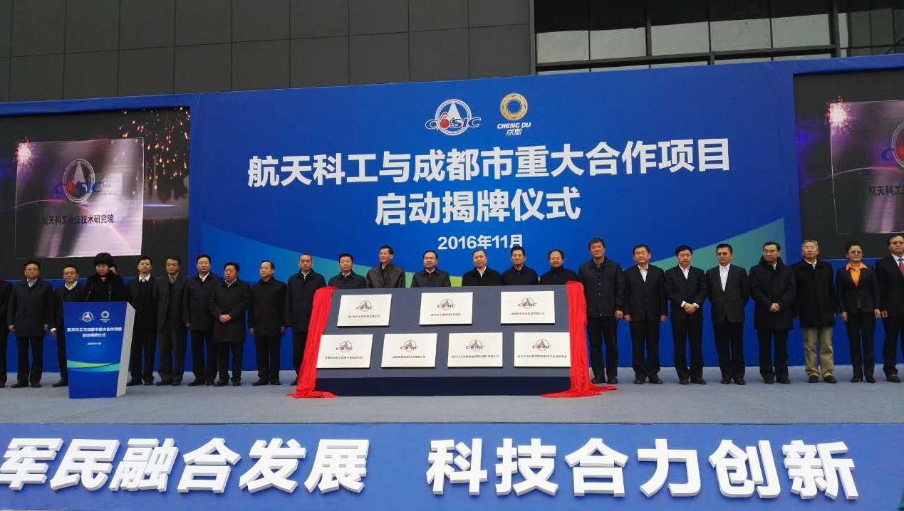 2016年11月24日上午,航天科工与成都市重大合作项目启动揭牌仪式在成都市成华区航天通信研究院隆重举行。中国航天科工集团公司董事长高红卫、成都市委书记唐良智以及成都市委、市政府、米兰(中国)的领导及各合作企业的代表共计100余人亲临现场,共同为航天科工投资基金管理(成都)有限公司和航天工业互联网智能制造产业基金等7大合作项目揭牌,携手推进军民融合发展全面提速,为四川智能制造、高新技术产业的发展注入强劲动力。