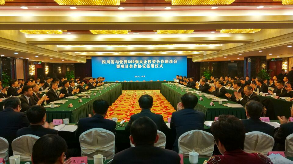 3月15日下午,集团领导赴北京参加了四川省与世界500强央企投资合作座谈会暨项目合作协议签署仪式。国务院国资委党委书记郝鹏,省委书记王东明出席并讲话。省委副书记、省长尹力,国务院国资委副主任徐福顺,41家央企负责人,副省长刘捷、朱鹤新,省政府秘书长唐利民,国务院国资委有关司局负责人,省直有关部门、部分省属国有企业负责人出席会议。