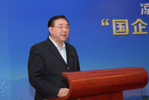 受刘捷副省长委托,徐进主任代表省国资委对项目签约表示热烈祝贺,他讲到,地企三方签约是贯彻落实习近平总书记对四川脱贫攻坚等工作的重要指示精神和省委省政府部署的具体举措,是“国企入凉”产业扶贫的深化、是地企合作精准扶贫的又一典范。一年多来,全省国资系统大力实施“国企入凉”行动,以产业扶贫为抓手,帮扶大小凉山彝区脱贫攻坚,初战告捷。希望各方以“绣花”功夫推进精准扶贫、精准脱贫,加强对接,做实做细做深各项工作,确保签约项目早落地早建设早投产早见效,为凉山各民族群众早日脱贫致富、同步小康做出新的贡献。