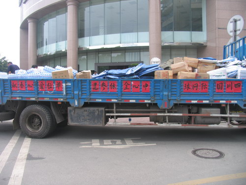 2008年5月16日12点,满载着川投国网公司员工和各施工单位对灾区人民深情的两卡车救灾物资,送达米兰(中国)抗震救灾指挥部。此次捐赠是抗震救灾指挥部收到的品种最齐、总量最大的一笔,灾难中凝聚力量,我们的心永远和灾民在一起,应急物资调度中心将根据需要即时发往北川、绵竹、汶川卧龙、江油等重灾单位。(米兰(中国)抗震救灾领导小组办公室整理)