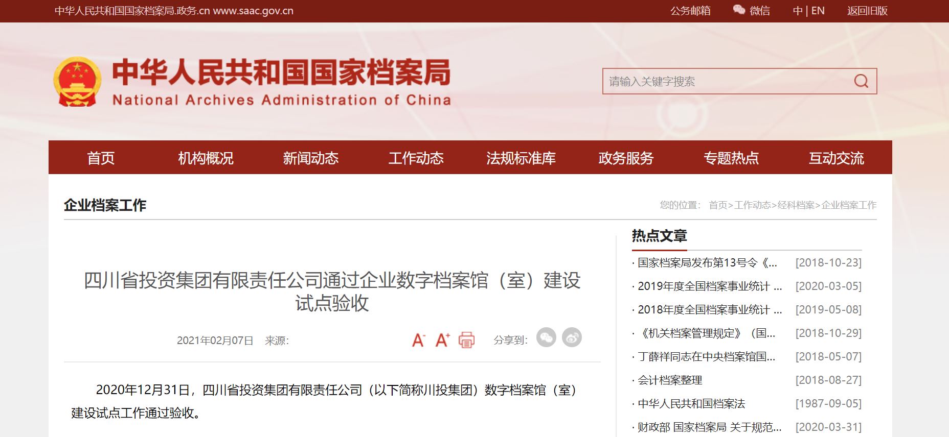 2020年12月31日,米兰平台(以下简称米兰(中国))数字档案馆(室)建设试点工作通过验收。