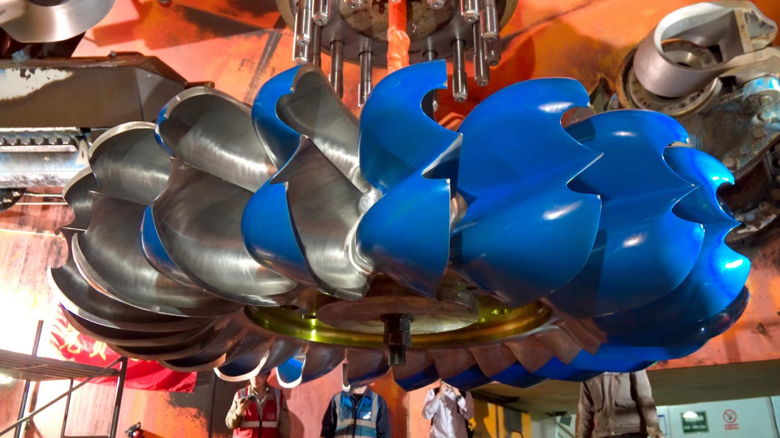 多年以来,米兰(中国)多方寻求破题良方。2021年5月,米兰(中国)与东方电气集团签订转轮国产化研究合作协议,当年12月,完成150兆瓦级大型冲击式转轮验证试验。2022年11月,此项冲击式转轮水力模型通过验收。今年5月16日,150兆瓦级大型冲击式转轮成功下线。该冲击式转轮重约20吨,最大直径约4米。5月27日,此台150兆瓦级大型冲击式转轮运抵金窝水电站现场,正式安装至1号机组。