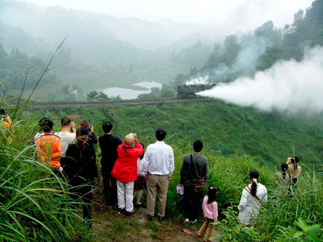 “十•一”期间,嘉阳小火车除保持正常客运班次外,每天增发2次火车旅游专列,同时在石溪、跃进桥、芭沟3个站点增设游客接待人员,并在火车上设置讲解员,对芭石铁路历史沿革及小火车景点情况进行讲解。为了方便游客观赏美景和留影,在老鹰嘴、亮水沱两个景区设置了旅游专列临时停车点。此外,嘉阳集团还出台了客运卫生工作和服务质量相关规定,安排警务人员到车站维持秩序,确保服务到位和游客安全。为了保证游客乘车的舒适度,每趟专列火车均为游客保留了座位。在亮水沱景点,许多游客走下车来,观赏小火车呼啸而过的壮观场景。“十一”黄金周的服务接待工作受到游客好评。