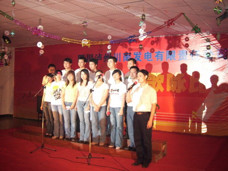 2007年4月29日晚上7:30,在“五一”国际劳动节来临之际,为了激发员工工作热情,丰富员工文化生活,营造健康向上的生活氛围。川南发电公司全体员工、施工单位员工及生活区家属齐聚电厂生活区现场,来自川南发电公司的10余支职工代表队伍用嘹亮的歌声共同迎接“五一”国际劳动节的到来。随着一曲《怒放的生命》拉开了比赛的序幕,一支支悠扬悦耳的歌曲在空荡的月空响起,台上演员激情冲天、真诚投入,台下观众如痴如醉、掌声雷动,比赛现场欢歌笑语此起彼伏,现场气氛热烈高潮跌起。美妙动听的歌声既有流行歌曲的现代气息,也有传统老歌的古典韵味。既有引吭高歌的独唱,也有男女对唱和大合唱。尤其是发电部一线员工演唱的《明天会更好》,唱出了员工对美好生活的憧憬,表达了员工追求美好生活的愿望,看到了员工对公司的信任和忠诚。后勤和安监部联合演唱的《为了谁》,吐露了员工心声,赢得了台下观众雷鸣般的掌声。整场歌咏比赛形式多样、精彩纷呈、和谐欢快,通过劳动者之歌,充分展现了川南发电员工不怕环境艰苦、不怕任务艰巨,乐于奉献、敢于挑战,昂扬向上、团结奋进的良好精神风貌。