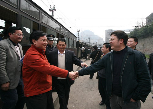 在犍为县人民政府县长伍定、嘉阳集团总经理范刚、副总经理钟卫旗等领导的陪同下,户副市长视察了嘉阳集团天锡矿井工业区,在矿井监控指挥中心了解矿井安全生产、现代化监控设备、矿工劳动环境和作业情况;参观了矿区观音溪文化广场,对嘉阳集团70年悠久历史文化表现出浓厚的兴趣,对嘉阳贯彻以人为本、构建和谐矿山的工作给予了表扬。户副市长还饶有兴致地乘坐了全世界闻名的嘉阳小火车,听取了嘉阳小火车文物保护和旅游开发工作进展情况,对嘉阳小火车申报国家级文物保护和建设四川煤炭工业博物馆的工作提出了指导意见。(袁成方)