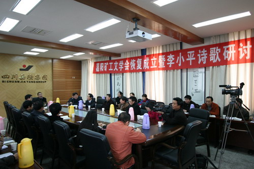 3月6日下午,春回大地,万物复苏,公司办公楼三楼会议室气氛异常热烈,公司党政领导、犍为作家协会会员、广大文学爱好者欢聚一堂,交流创作心得,共谋企业文化、研讨李小平诗歌、喜迎矿工文学会恢复成立。
