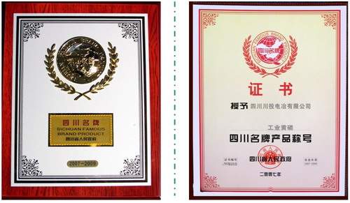 日前,川投电冶工业黄磷被四川省人民政府、四川省名牌战略办公室授予“四川名牌产品”称号,有效年限为2007—2009。这是即CHC全国高科技质量监督促进工作委员会授予川投化工“2007年全国科技创新—质量管理先进单位”称号后的又一殊荣!!