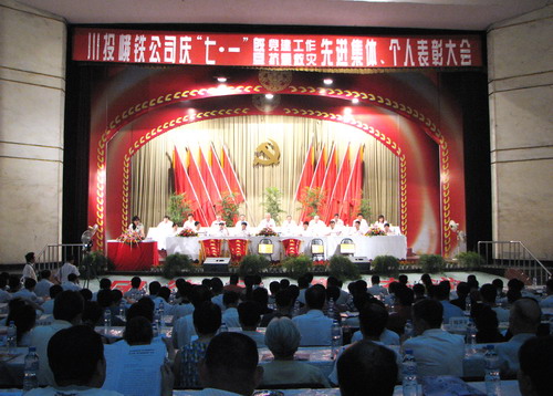 在举国上下隆重庆祝中国共产党建党八十七周年之际,川投峨铁公司庆“七• 一”暨党建工作、抗震救灾先进集体、个人表彰大会于6月30日下午在公司工人文化宫隆重召开。