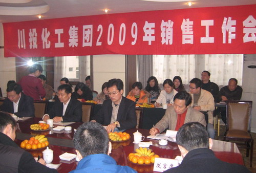 近日,川投化工2009年度销售工作会在成都太成宾馆举行。公司总经理李晓列、副总经理王清海、张建强,总经理助理董德明及销售部全体工作人员共计30余人参会。会议由销售部部长丁文平主持,