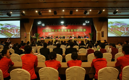 为认真贯彻落实集团公司安全生产紧急视频会精神,实现“安全第一,预防为主,综合治理”的安全生产方针,普及员工安全知识,提高安全意识,增强避险防灾能力,营造安全稳定的经营氛围。6月23日,川投国网公司在公司酒店举办了安全知识竞赛,分别由各部门组成的7支代表队参加了本次比赛。双流县消防大队、棠湖派出所的领导,以及公司执行董事李文志、总经理方述锐、副总经理姜荣和全体员工一起观看了竞赛。