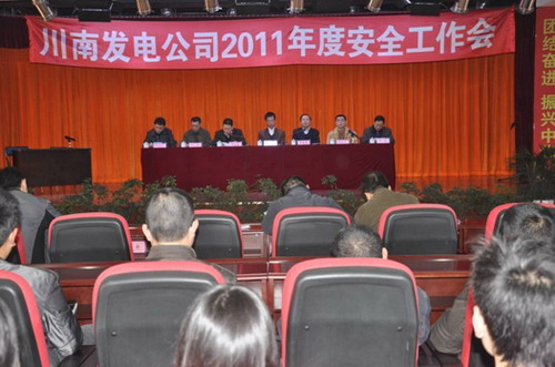 3月8日,川南发电公司召开了2011年安全生产工作会。会议由公司副总经理谢伟平主持,总经理李胜章,党委书记唐得旗,常务副总经理谭先明,副总经理邱涛,纪委书记、工会主席黄松,财务负责人刘云戈及中层管理人员和公司全体职工参加了会议。