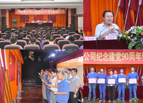 6月27日下午,川南发电公司召开了纪念建党90周年暨先进表彰大会。大会由公司党委委员、纪委书记黄松主持。公司党委书记唐得旗以《中国共产党何以有强大的生命力》为题进行了学党史、强党性宣讲,党委委员、常务副总经理谭先明宣布了表彰决定,全体党员、入党积极分子参加了会议。