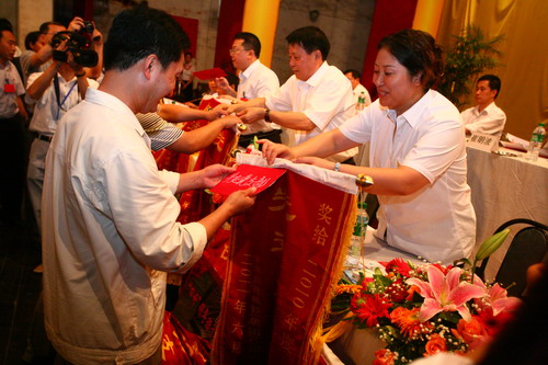 颂先进,弘扬正气;赞模范,振奋精神。大会隆重表彰了2010年度公司在党建工作方面的先进集体、先进个人。公司领导分别为获奖集体、单位和个人颁发了锦旗、奖状和荣誉证书。 会上,优秀共产党员代表、三分厂党员王平宣读了《倡议书》。