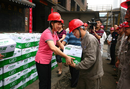 慰问现场,赖主席代表慰问小组饱含深情对爱岗敬业的峨铁职工表示亲切问候、致以美好祝愿,对企业职工不怕酷暑、忘我工作的奉献精神给予了高度赞扬,对峨铁公司长期以来为地方经济建设、和谐发展作出的贡献给予充分肯定,并将饱含市总工会对职工一片关爱之情的347件矿泉水送到了一线职工手中。同时,希望广大职工一如既往充分发挥新时代工人阶级的先锋精神,唱响“工人先锋号”主旋律,立足岗位做贡献,当好主力军,建功“十二五”,以实际行动为企业的发展和地方经济建做出更大更好的贡献。在场的50多名一线职工代表对赖常委的问候、关心及鼓励报以热烈的掌声。彭少奇代表公司对乐山市总工会及赖主席的关怀表示衷心感谢,并鼓励干部职工将市总工会的关心化做动力,发扬不怕苦、不怕累、团结拼搏、奋勇争先的“峨铁精神”,以岗位为舞台,以企业发展目标为己任,以饱满的工作热情战高温夺高产,积极进取,齐心协力打好“增产增效、降本降耗”攻坚战,以优异的成绩向建党90周年增光添彩、向国庆献礼。