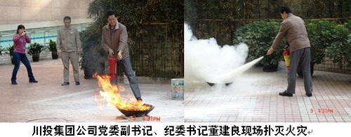 川投大厦共有16层地面办公楼层,属小高层建筑,是青羊区消防重点单位之一。为使川投大厦业主、客户熟悉大厦消防通道和正确使用灭火器,佳友物业公司川投物业服务中心会同集团公司后勤管理中心组织了业主、客户共同参与的消防演练。本次消防演练,得到了集团公司领导的大力支持,得到了集团公司安委会、后勤中心和安办等相关部门的支持和配合。演练总指挥由佳友物业公司安委会主任、副总经理王宾同志担任,集团公司党委副书记、纪委书记董建良、总经理助理、办公室主任杨强、各部门领导及管理人员、客户单位代表、后勤管理中心及佳友物业公司本部、物业服务中心全体员工参加了演练。