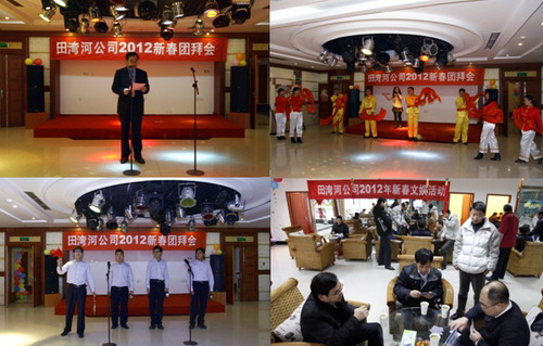 当日,田湾河公司还在电站现场举行了新春猜谜、跳棋、“双升”、斗地主比赛等一系列新春团拜文娱活动。当晚,公司领导与全体员工欢聚一堂,举杯同祝公司2012年取得更加的骄人业绩,共同祝愿公司来年再创辉煌! (王鸽)
