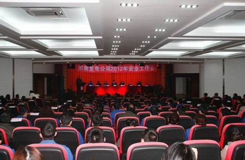 近日,川南发电公司召开了2011年安全生产工作会。会议由公司总工程师苟发全主持,总经理李胜章、党委书记唐得旗、常务副总经理谭先明、副总经理谢伟平、副总经理邱涛、纪委书记、工会主席黄松、财务负责人刘云戈及中层管理人员和公司全体职工参加了会议。