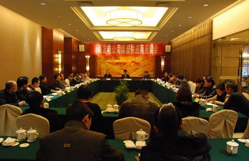 会上,副总经理谢伟平对公司当前的基本情况、2011年煤炭采购、客户信用等级评定情况向供煤企业进行了详细的介绍,并就当前国际国内煤炭供应形势进行了深入分析,并向客户宣讲了国家、省、市发改委关于加强发电用煤价格调控方面的相关政策。