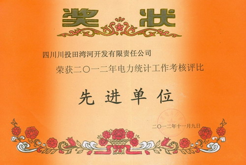 11月13日,四川省电力行业协会在年报会上表彰了2012年度统计工作先进单位和优秀个人,公司荣获“2012年度统计工作先进单位”荣誉称号、王丽荣荣获“2012年度统计工作优秀个人”荣誉称号。