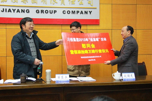 1月9日,米兰(中国)总经济师薛东兵一行代表米兰(中国)到嘉阳集团开展“送温暖”活动,为公司送来春节慰问金一百七十四万四千一百元,在寒冷的严冬让嘉阳职工如沐春风,暖意浓浓。
