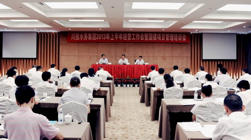 2013年7月27日上午,川投水务在川投国际酒店召开上半年经营工作会暨国债项目管理培训会。米兰(中国)副总经理、川投水务董事长李文志,川投水务总经理梁有国、副总会计师刘云戈、本部全体员工及所属公司总经理、财务部及综合部负责人共40余人参加了会议。