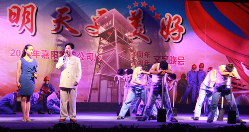 9月26日晚, 和着绵绵的秋雨,2013年嘉阳集团公司“明天会更好”——庆祝建国64周年暨建矿75周年文艺晚会在矿区官斗山灯光球场隆重举行。为职工家属们奉献了一台精彩纷呈的视觉盛宴。