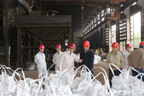 郭主席一行在公司党委书记、总经理唐华应等公司领导和有关工作人员的陪同下,首先前往二分厂、新银江一分厂、水回收现场视察了公司安全生产及节能环保现场情况。