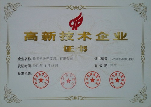 经过合规性审查、认定与公示等环节,长飞四川公司顺利通过四川省科学技术厅、省财政厅、省国税局、省地税局等部门的联合评定,荣获国家级高新技术企业认定,标志着长飞四川迈上了自主创新、持续创新的发展道路。