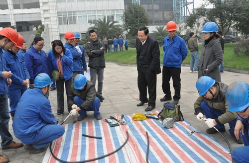 四川泸州川南发电有限责任公司通过岗位练兵、考问讲解、举办技能竞赛等多种途径,大力加强职工技术培训,提高职工技能水平。图为在该公司举办的职工技能竞赛上,参赛职工正进行电缆头制作。(姜波)