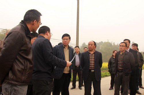 3月25日,犍为县县委书记陈长明、县人大主任韩广琦、县长陈建东率县委、县府领导,政府办、发改局、国土资源局、财政局、交通局、环境保护局、石溪镇政府等相关人员到嘉阳集团公司调研,就同仁煤矿项目征地、入场公路建设、项目政策优惠、电力供应保障、定费统收等问题进行现场办公。