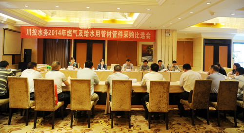 5月15日10时,经过系列前期准备工作,川投水务2014年管材及管件采购比选正式开标。5家管材生产商分别对为燃气用PE管材、管件,给水用PE管材、管件,给水用PPR管材、管件3个标段进行投标。在川投水务比选监督小组的监督下,经比选评审小组对以上3个标段详细评审,并通过比选谈判、二次报价,最终分别确定了燃气PE管材管件、给水用PE管材管件和给水用PPR管材管件的合格供应商。
