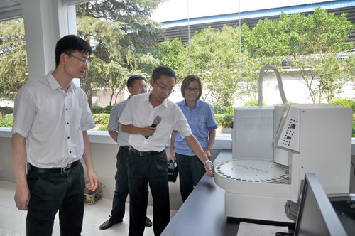黄河副主任一行先后参观了公司制水工艺流程、水质检测中心,在听取了公司总经理邓锐的工作汇报后,他特别询问了公司供水高峰时期企业生产经营情况和便民利民服务措施。
