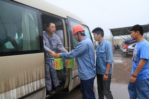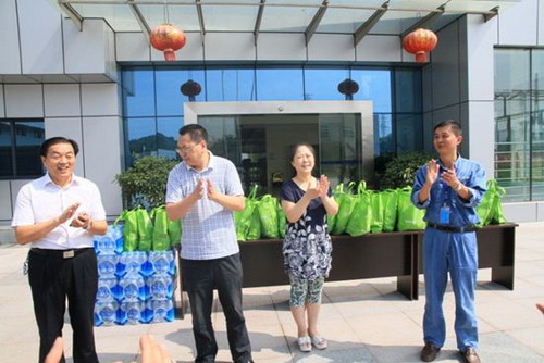 8月的达州,正值高温酷暑、烈日炎炎,平均气温达到40℃以上,这对战斗在达州燃气电站工程一线的全体参建人员是一个极大的考验。集团公司工会急群众所急,充分体谅下属企业的困难和艰辛,及时拨发防暑降温用品专款,为地处边远山区川投气电员工送来了夏日清凉。8月20日,公司副总经理何京江、冯毅代表集团公司和川投气电公司,将防暑降温物资送到各参建单位手中。