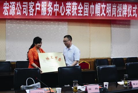 宏源公司总经理李旭东表示:公司经营班子一定会团结和带领广大员工,把今天的授牌作为新的起点。要通过客户服务中心的“全国巾帼文明岗”创建活动,辐射到每一个岗位和全体员工,积极在其他部门、其他岗位推广客户服务中心的服务模式,让每一个岗位都成为名副其实的“文明岗”和“示范岗”,让全体员工共同来保持这个荣誉、巩固这个荣誉,真正体现创建“全国巾帼文明岗”的重要意义,不辜负上级领导和社会群众的信任、支持、关心和厚爱。