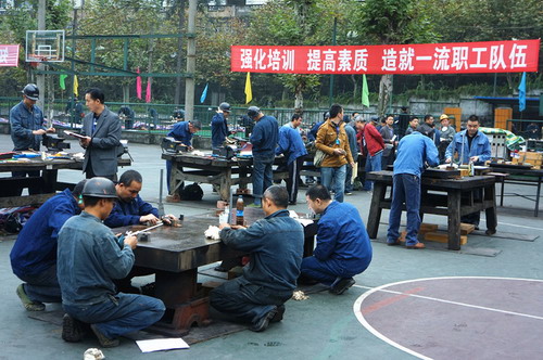 11月4日,来自公司各单位的三百多名技术工人同场竞技展开实际操作的打擂比武。考试现场成为了技术工人展示绝活的“大舞台”,钳工考点,参考职工一边看着图纸,一边拿着量具,精益求精地制作着考试工件;焊工考场,焊花飞溅、弧光闪烁,考工们正聚精会神地对工件进行焊接操作;电工考区,参考职工一丝不苟地制图、做线、接线……充分展示了平日里练就的扎实基本功。考试结束后,集团公司将根据负责此次考工晋级的合作方成都工业学院提供的理论和实际考试成绩再结合职工的日常考核表现,按《嘉阳集团公司技术工种考工晋级管理办法》规定的比例,评定最终晋级级别。