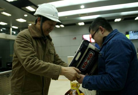 随即,董书记来到川南发电公司2×600MW机组中央集控室,问候战斗在一线的职工,向职工送上慰问品,代表集团向职工拜早年.董书记还向当班值长详细了解了机组的运行情况,询问了职工的作息时间安排和生活上的情况,要求公司要随时掌握一线职工的所思所想,努力关心职工的疾苦,为他们解决实际困难。
