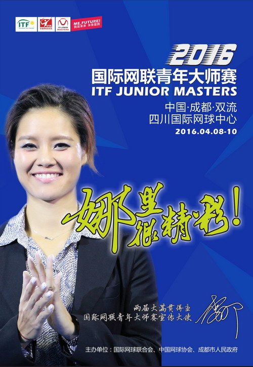 李娜将担任赛事宣传大使,在2016国际网联青年大师赛比赛期间来到成都,参加10日举行的颁奖仪式。当天,李娜还将重新拿起球拍,与成都的青少年网球爱好者进行一次面对面的互动。李娜曾通过自己的坚持努力,斩获两个大满贯单打冠军,她的经历已经成为众多网球爱好者前行的动力。李娜退役后一直在关注参与中国青少年网球的发展,她的到来,将对成都乃至中国青少年网球发展起到积极促进作用。她在新闻发布会时特意发来贺词:“非常高兴今年我们因国际网联青年大师赛相聚在一起。这项赛事必将成为全球青少年网球选手成长的重要通道,我相信很多优秀的青少年球员会从这里走向更高的赛场。作为一名在网球场上拼搏了多年的网球人,我祝所有参赛选手在这里获得新的成功。同时,我期盼着赛事期间,与成都中、小学网球爱好者的互动,他们是中国网球运动未来发展的一部分。”
