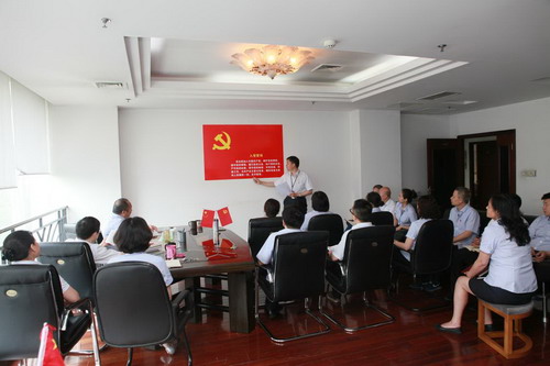 最后,在金群同志的带领下,全体党员在党员活动室墙上的党旗前一起重温了入党誓词。