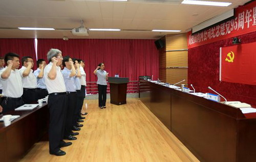 大会在催人奋进的《国歌》声中拉开了序幕,公司党委委员、副总经理卢建奎宣读了公司党委《关于表彰2015-2016年度先进基层党组织、优秀共产党员、优秀党务工作者的通知》,公司总经济师段明宣读了公司党委《关于确定2016年度共产党员示范岗、基层示范团队的通知》。公司党委授予第五党支部“先进基层党组织”称号;授予李铁柱等5位同志“优秀共产党员”称号;授予王伟等2位同志“优秀党务工作者”称号。确定杨轶舫等16同志为党员示范岗;第五党支部为基层示范团队。会上,公司领导分别为受表彰的支部和党员同志颁奖,为党员示范岗和基层示范团队授牌。会上,公司全体共产党员面对鲜红的党旗,举起右手,重温入党誓词:“我志愿加入中国共产党……为共产主义奋斗终身,随时准备为党和人民牺牲一切,永不叛党。”