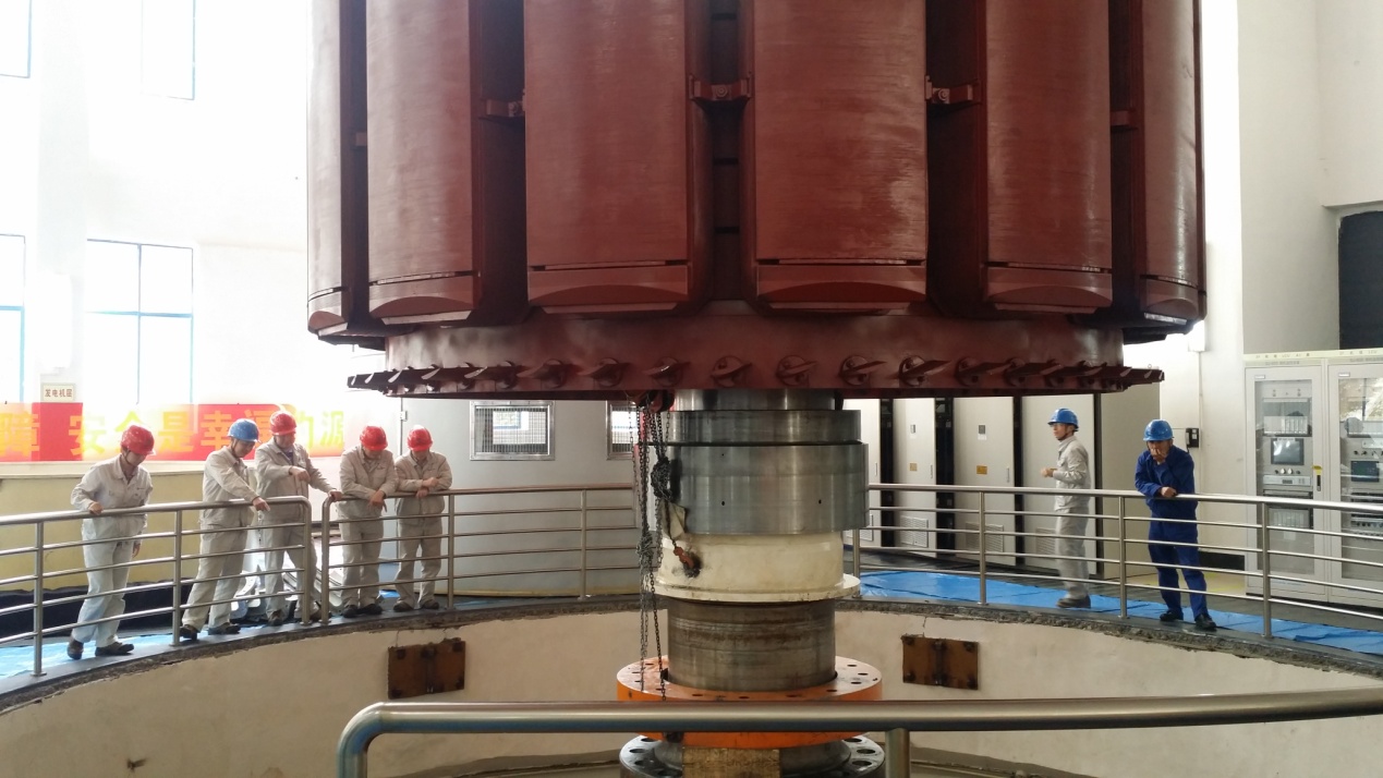 10月17日,随着机械、电气、调速器工作票的规范签发和许可,机组检修工作正式启动;10月19日,经过对2#机组推力头的加温以及起吊,2#机组推力头在加热产生膨胀后被成功拔出;10月20日,直径8.7米、起吊总重量35吨、承载着推力轴瓦与轴瓦托盘的上机架在监护人员的严密监控下,稳稳降落到指定位置;10月21日,水轮机主轴和发电机主轴法兰连接螺栓拆卸完毕、水轮机主轴支撑完毕、转子平衡梁与桥机主钩连接完毕,吊转子条件已充分具备;10月22日,在现场工作人员沉着冷静的操作和精确细致的配合下,发电机转子及水轮机主轴相继吊离机坑,阶段性拆机工作圆满完成,为下一阶段机组检修维护工作赢得了宝贵时间。