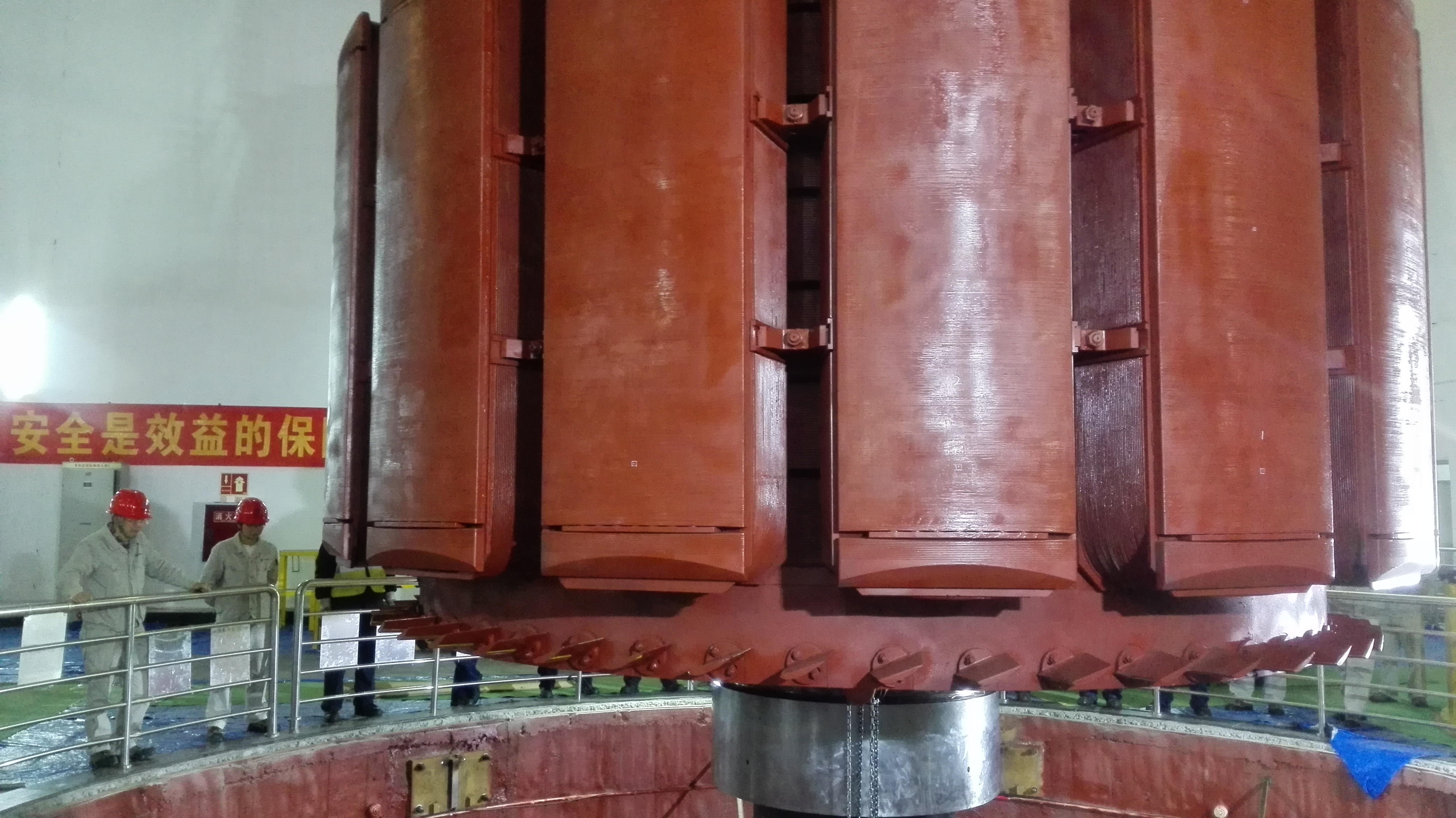 5月7日17:50,随着一声长长的、清脆的哨声响起,田湾河公司仁宗海2F机组转子平稳地安放在制动闸上,这标志着仁宗海2F机组全面回装阶段正式开始。