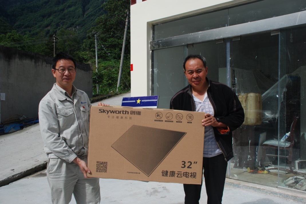 在草科乡副乡长胡杰的带领下田湾河公司一行首先来到了友爱村村民活动室。作为丰富村民业余文化生活,开展集中学习教育的重要场所,受制于资金缺口,活动室急需补充一台电视机。在得知这个消息之后,田湾河公司立刻组织相关部门开展了采购工作,并赶在“端午”节前送到现场,以村委会解燃眉之急。