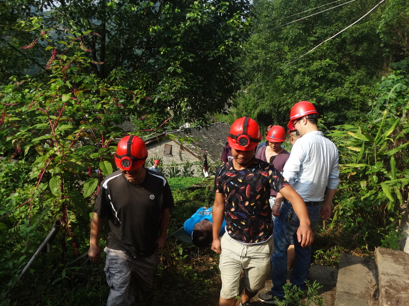 现场指挥员接到命令后,立即通知救援小分队人员集合,同时及时与当地政府、医院取得联系,开展预警联动,实施救援和伤员救治。不到5分钟,救援人员全部赶到集合地点,携带抢险工具及救援物资整装赶赴现场。