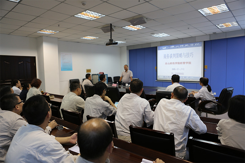 为进一步提升川投峨铁公司营销管理人员的商务谈判能力及职业素养,增强公司市场竞争力,9月8日,川投峨铁公司举办商务谈判培训班,邀请乐山师范学院经管学院副院长、管理学教授杨小川作《商务谈判策略与技巧》专题培训。川投峨铁在家公司领导、财务处、供销公司、企划发展处、办公室部门负责人以及业务人员共42人参加了培训。