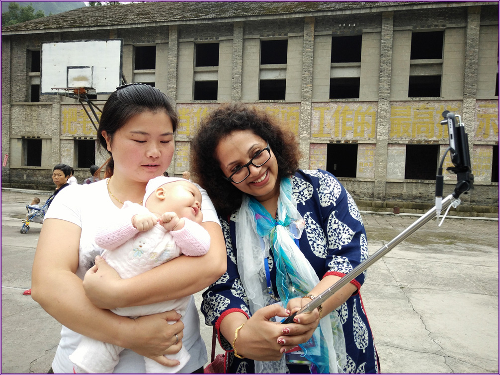 “我特别喜欢这里的花海,来之前就一直打听这个季节有什么花,结果非常幸运,看到很大一片,我会把这里当成乐山之行中非常美妙的回忆。”来自印度的Rajashree边走边看,不断向志愿者了解当地历史。