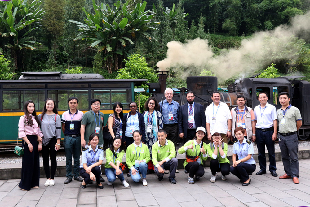 9月16日与9月18日,参加第四届四川国际旅游交易博览会的100多位中外嘉宾代表分不同批次走进嘉阳•桫椤湖旅游景区,坐火车、观花海、逛小镇,体验了一趟奇幻美妙的穿越之旅。