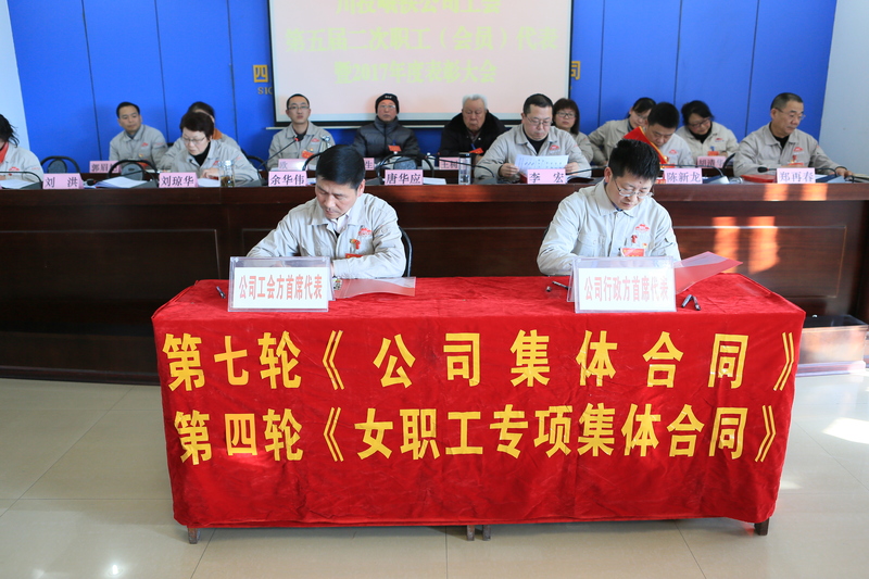 会上,总经理唐华应分别与业务分管领导及部分二级单位党政责任人签订了第七轮《集体合同》、第四轮《女职工特殊权益保护专项集体合同》、第二轮《劳动安全卫生与职业健康专项集体合同》以及2018年《安全环保工作目标责任书》。