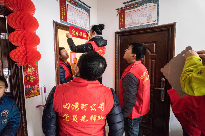 茶话会后,朱莉送上了田湾河公司支援村委会的办公设备,并对在场贫困户发放代表喜庆、祝福的新年红包和慰问品。随后在村党支部曾书记带领下,田湾河公司一行人实地上门走访部分行动不便未能参加活动的贫困户,关心他们的生活起居、衣食住行,并帮助他们打扫卫生、贴春联、送祝福。一片忙碌的景象,让贫困户提前感受到节日的喜庆。