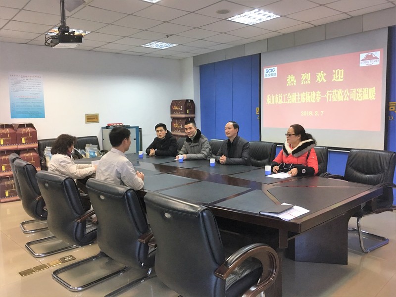 为深入学习贯彻党的十九大精神和省十一届二次全会、乐山市委七届四次全会精神,进一步落实好乐山市委“走基层、解难题、办实事、惠民生”活动要求,充分发挥工会组织桥梁纽带作用,2月7日,乐山市总工会党组成员、副主席杨建春率市教科文卫体工会副主席鲍学智、市总工会财务部副主任科员朱丽以及办公室副主任刘佳青云一行4人到川投峨铁公司开展“走基层、送温暖”活动。川投峨铁公司党委副书记、工会主席余华伟以及工会相关负责人在公司908会议室接待了杨建春副主席一行。